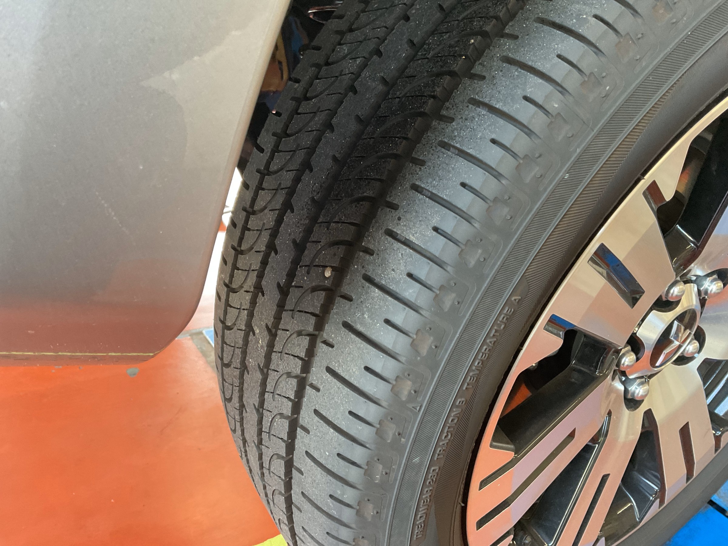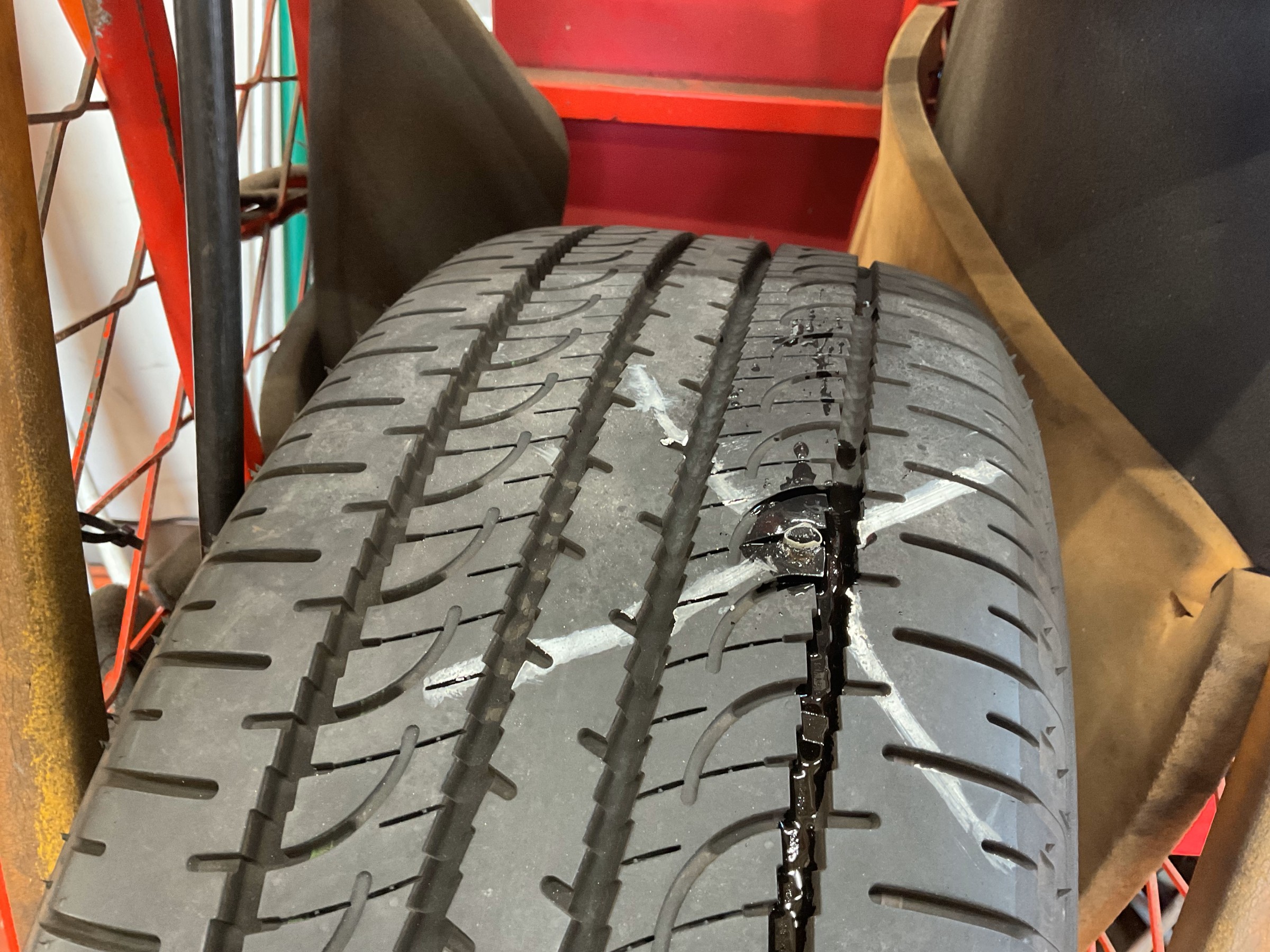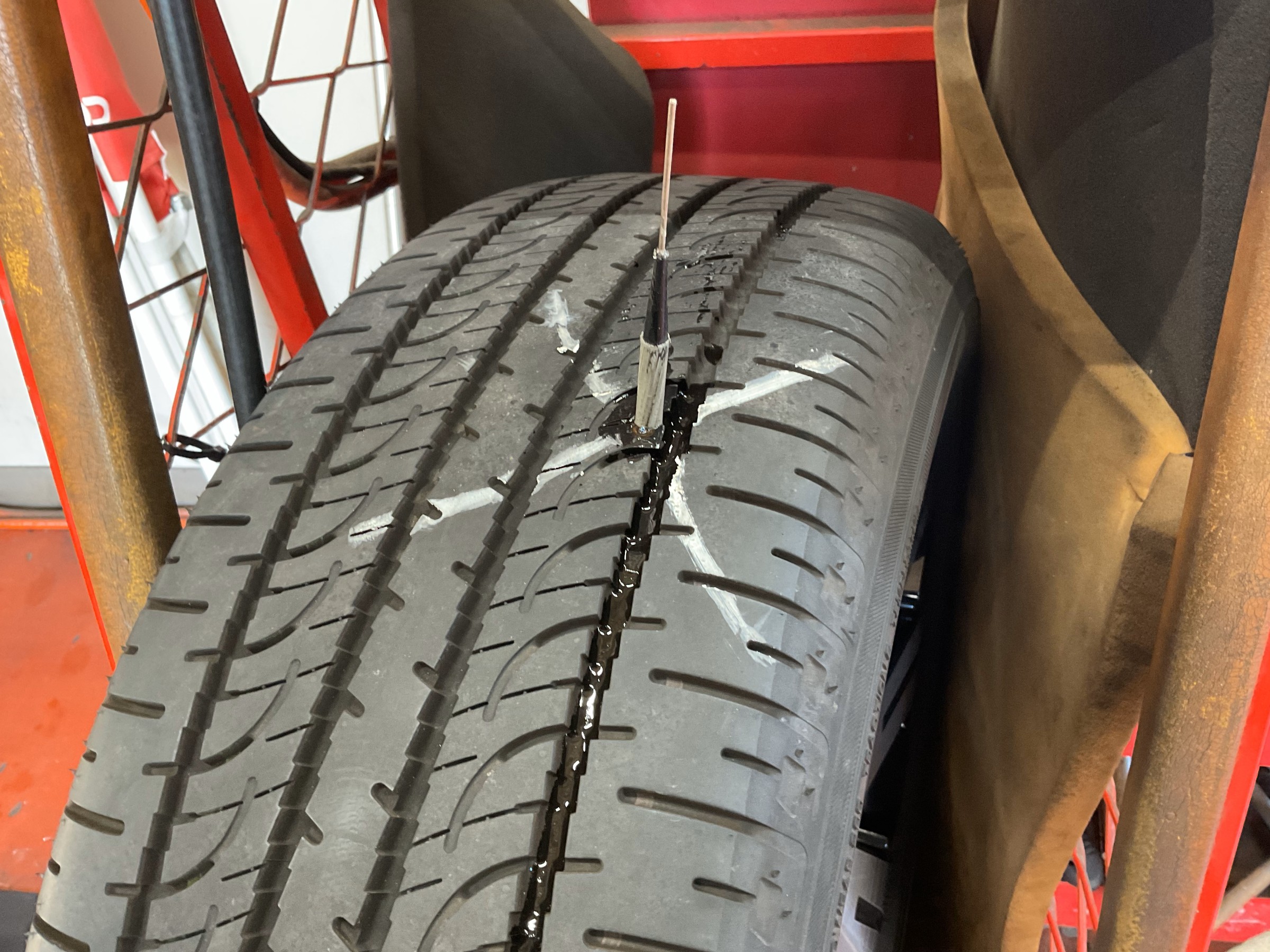タイヤに釘が刺さっています
