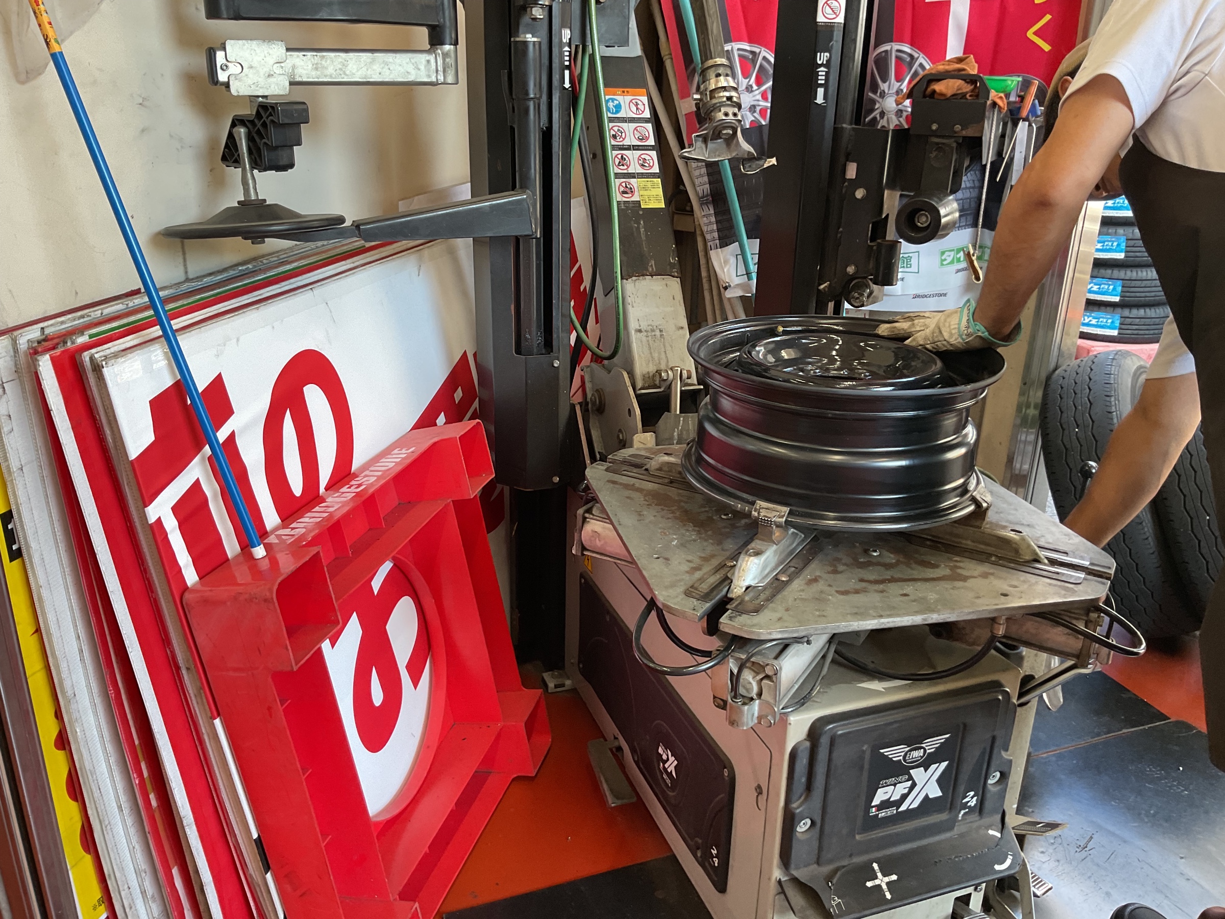 タイヤチェンジャーにてタイヤを交換していきます