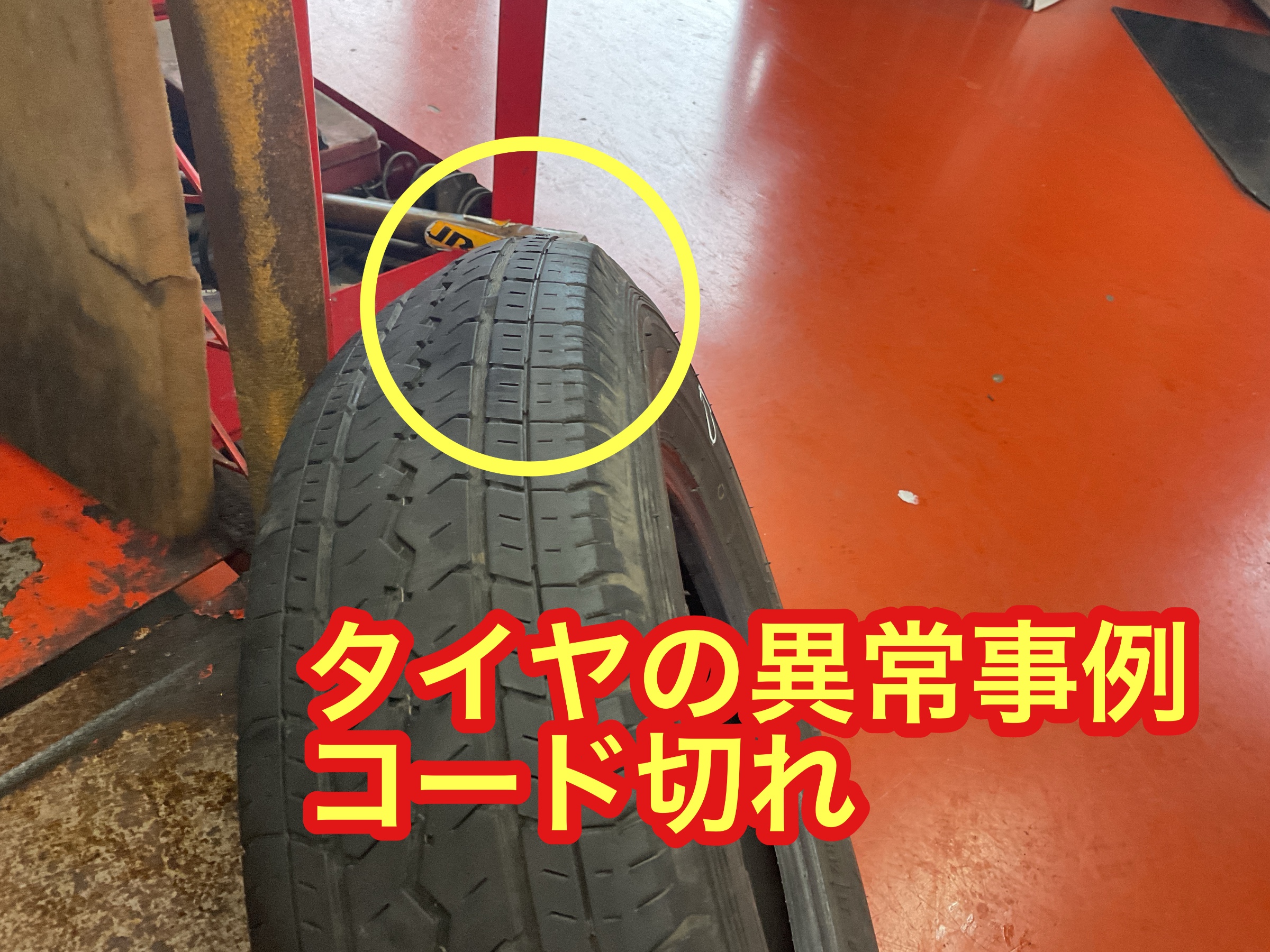 タイヤ内部のコードがダメージを受けての損傷したことで