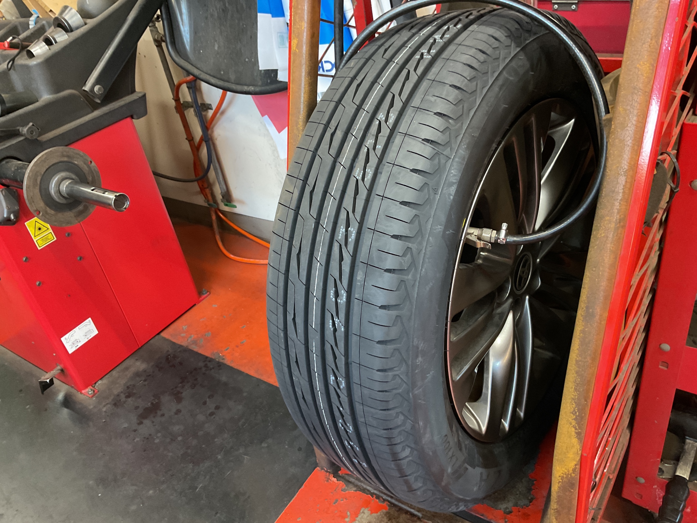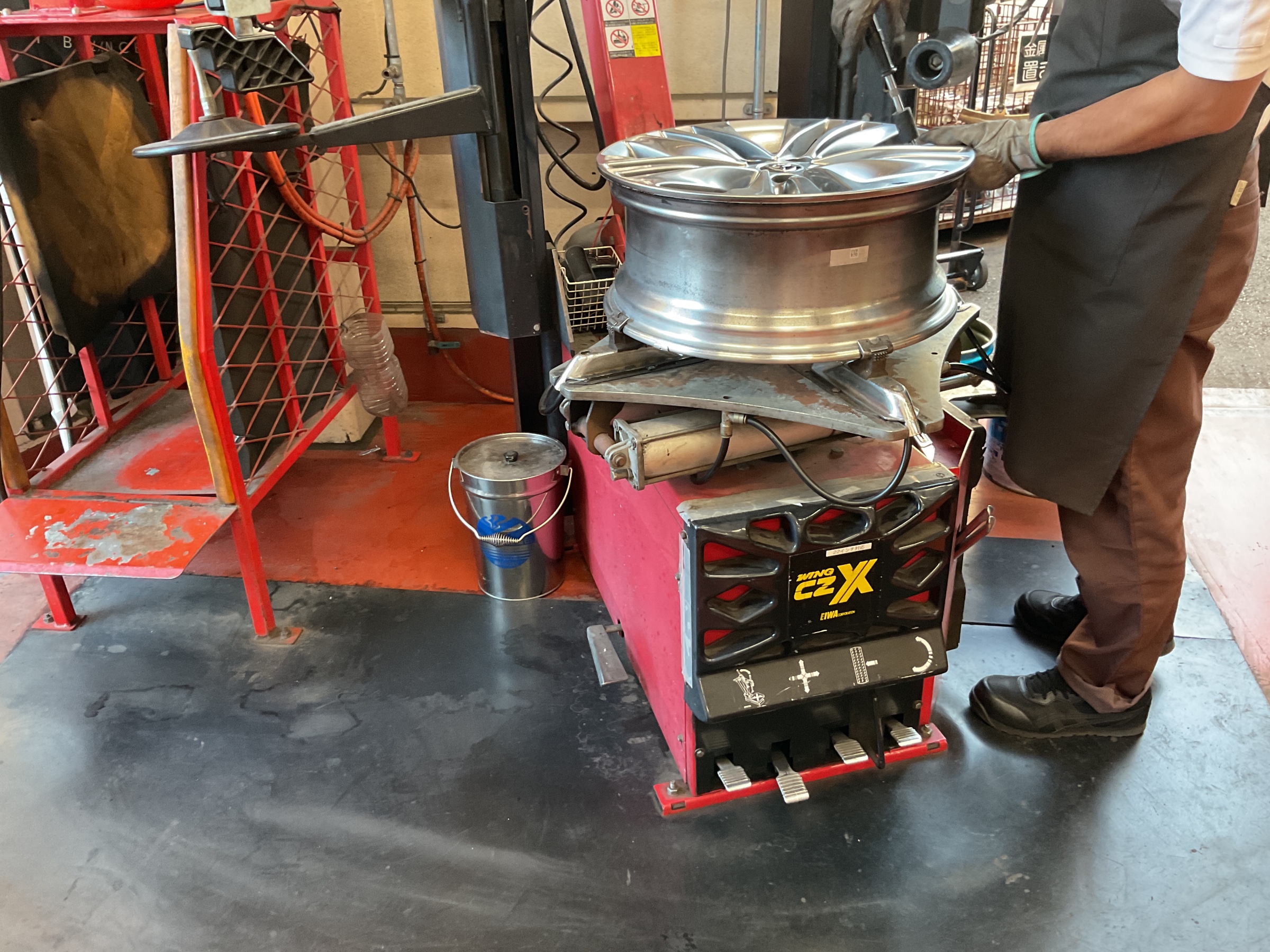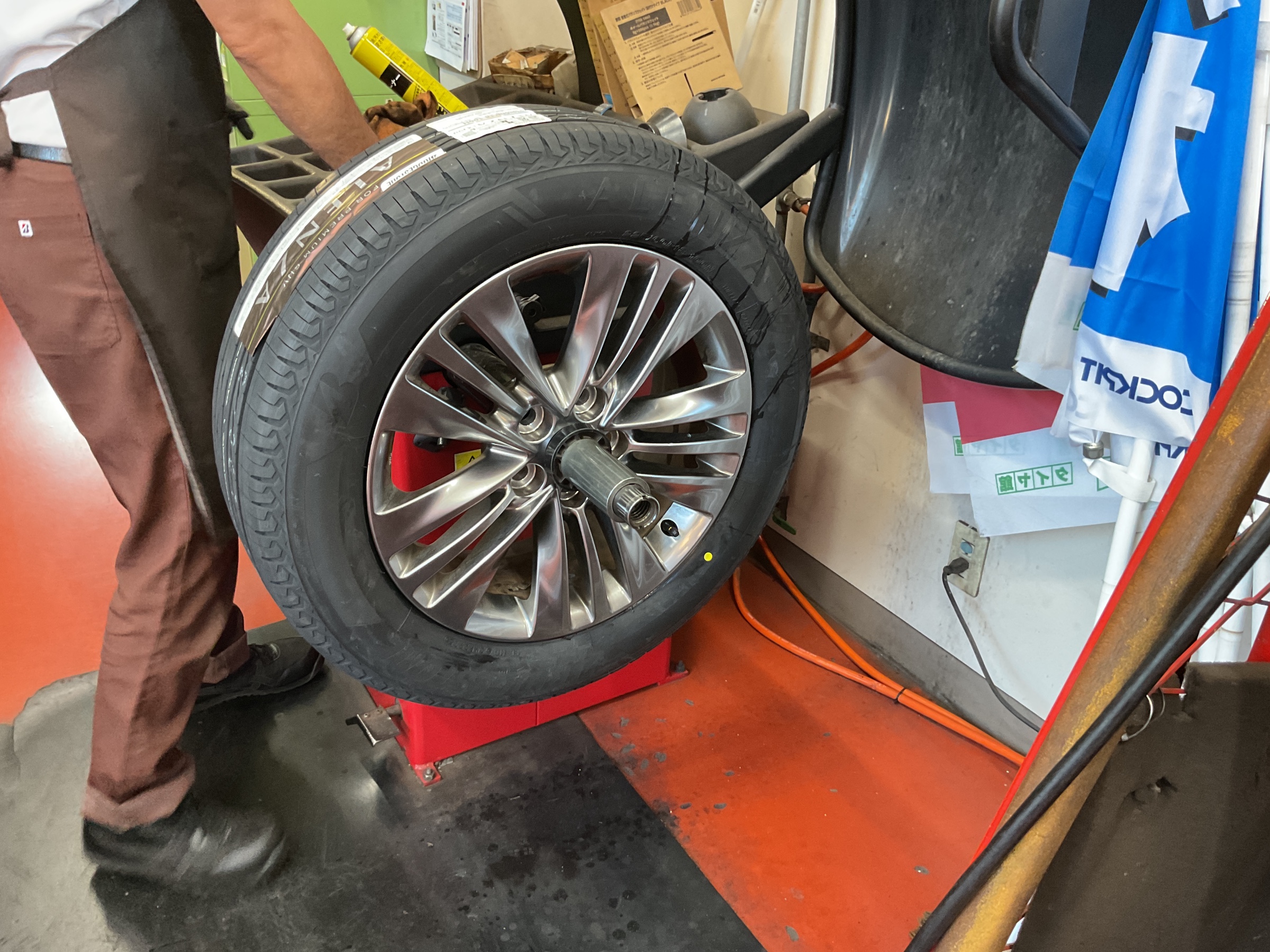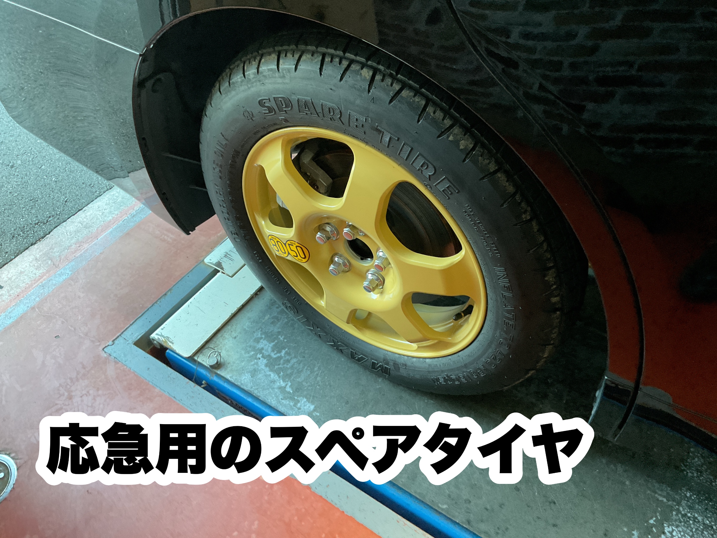 今回は応急用のスペアタイヤ装着車でしたのでスペアタイヤに付け替えてのご来店でした