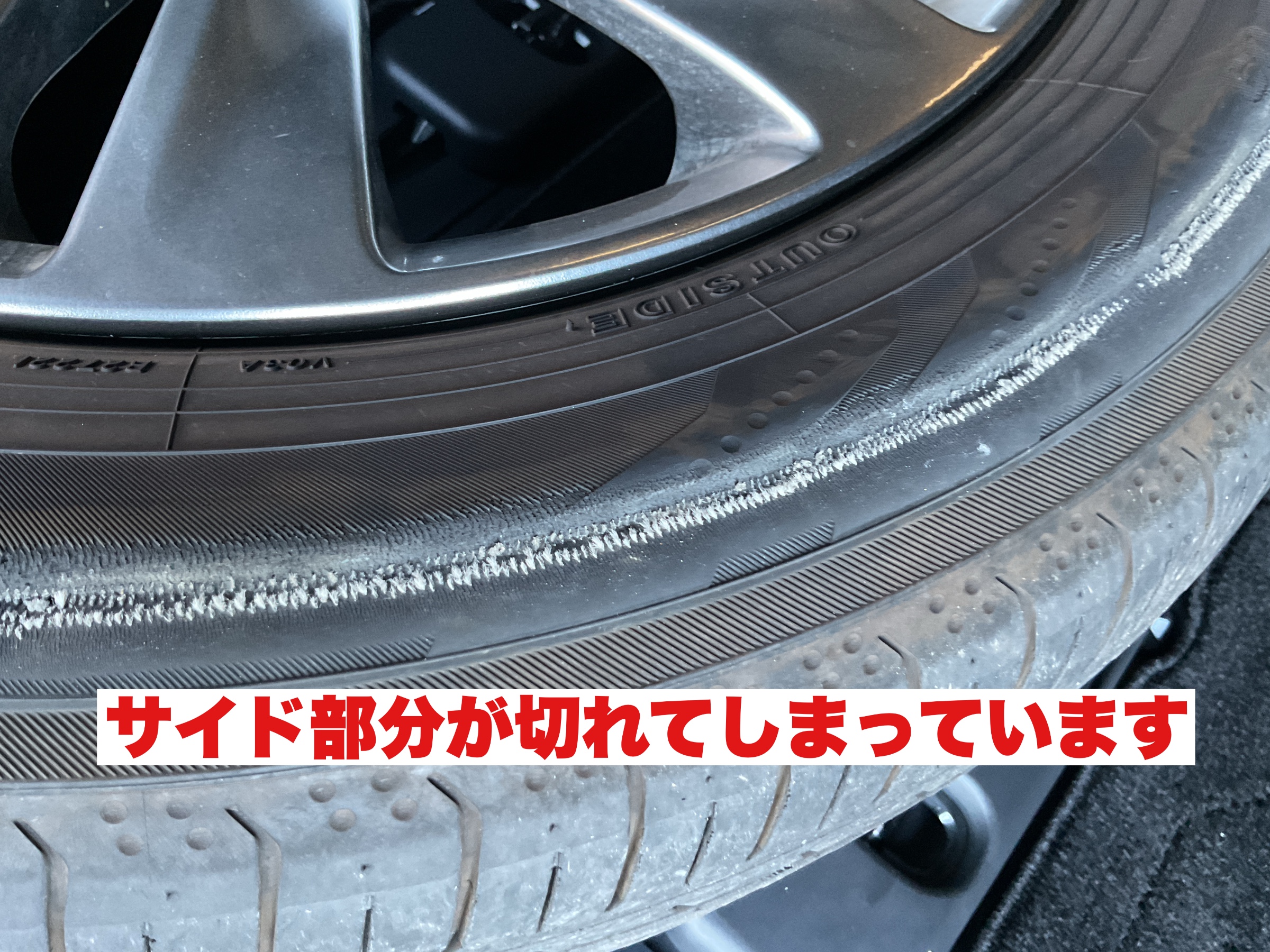 低空気圧の状態での走行でサイドの部分が切れてしまっています