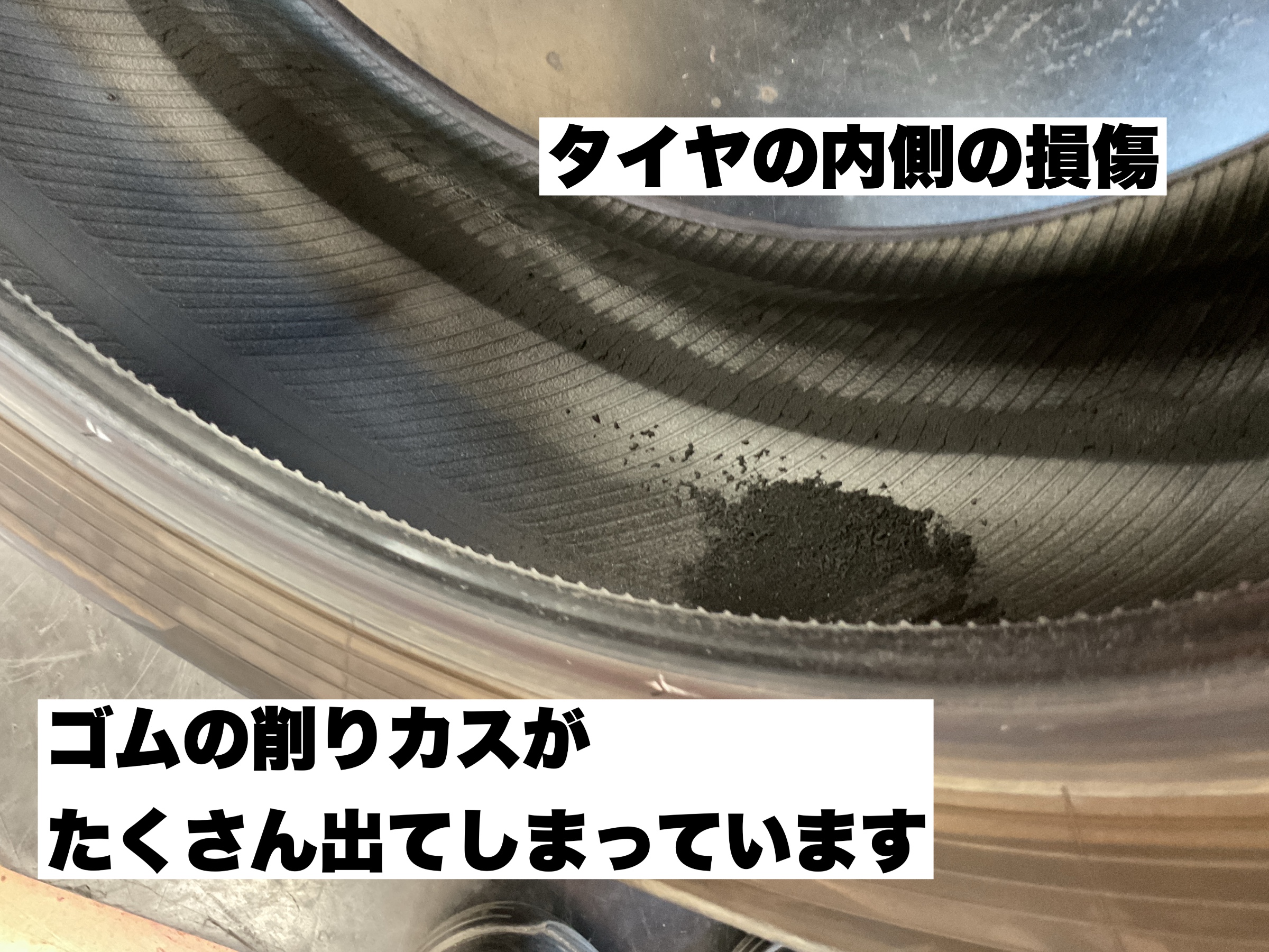 内側もタイヤが擦れてゴムの削りカスがたくさん出ていました