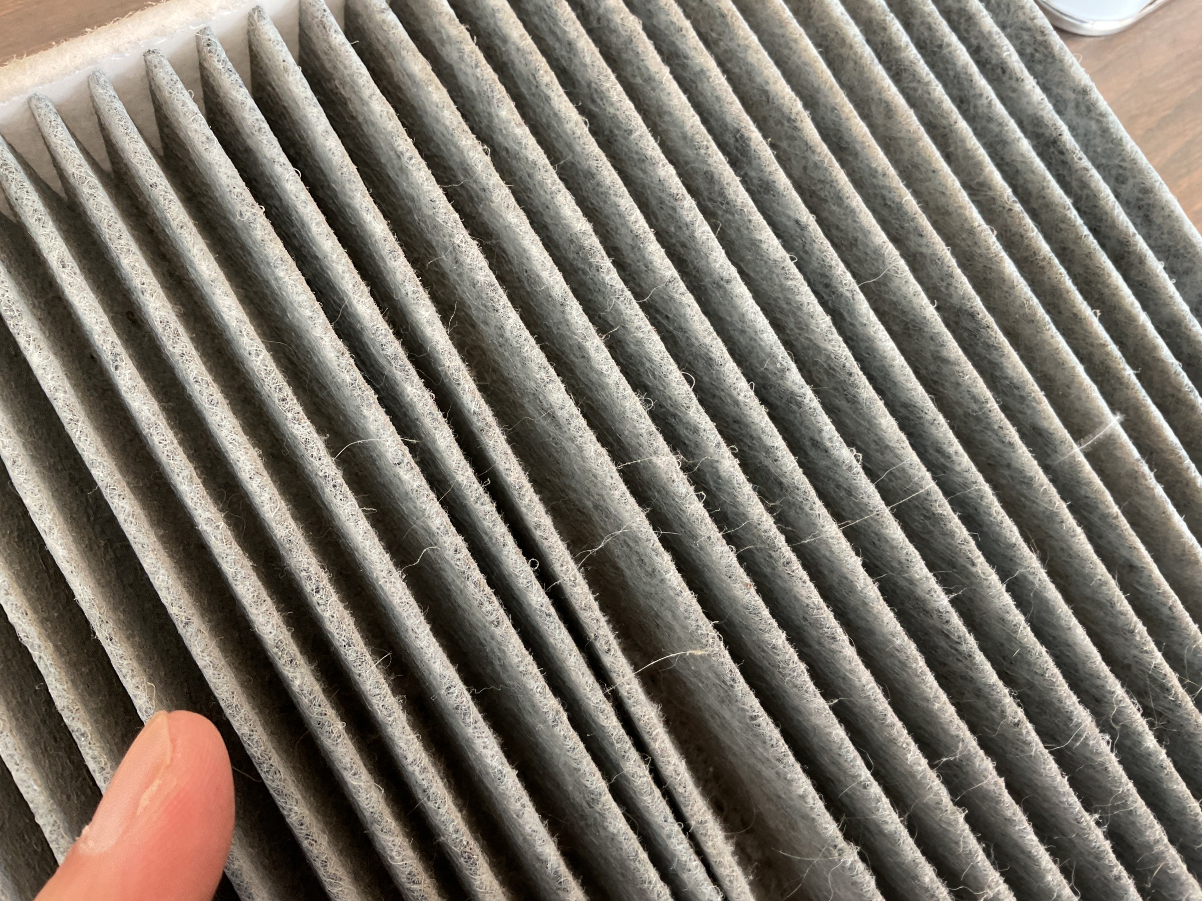 ちょうど1年、1万キロ走行したエアコンフィルターがこちら ↑