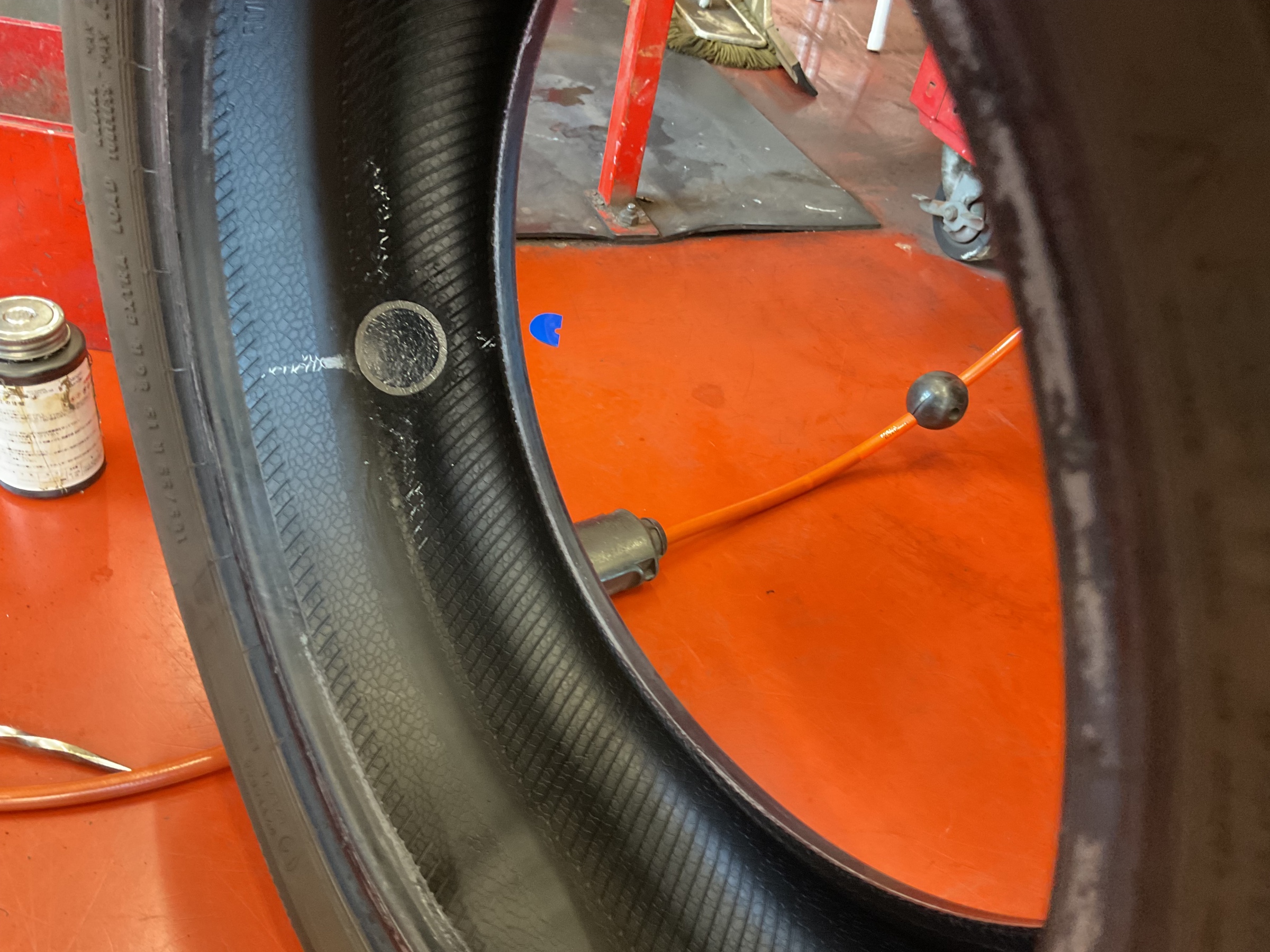 タイヤをホイールからばらしてタイヤの中の確認をします