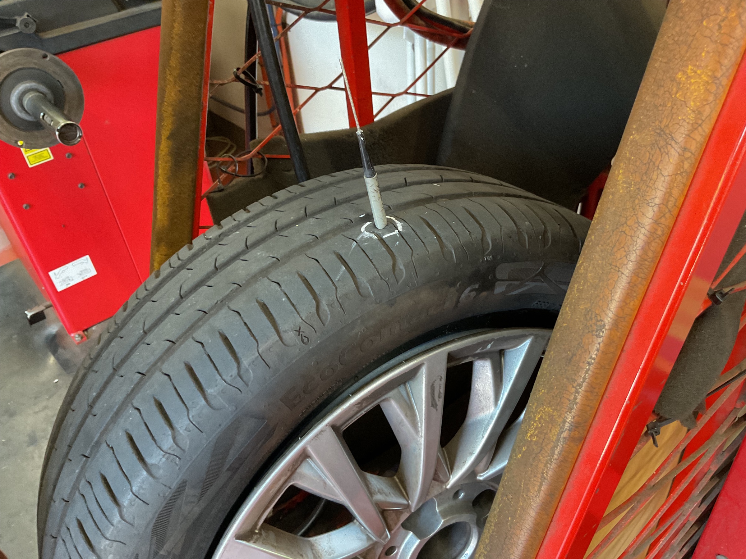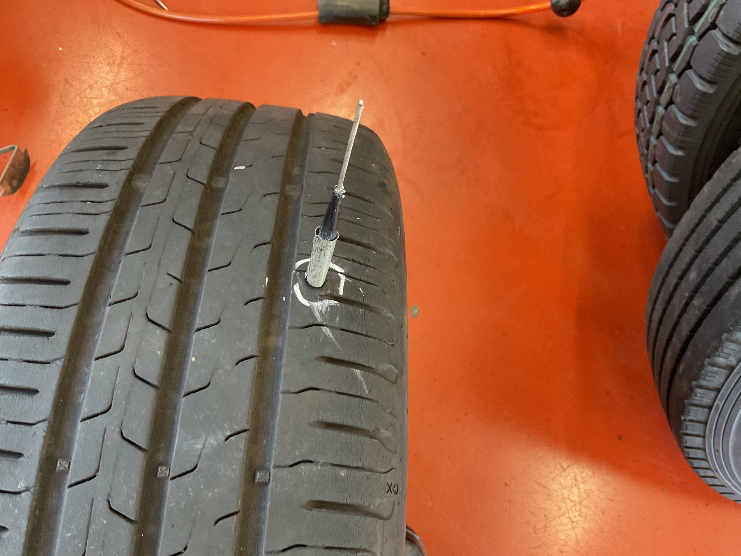釘が刺さっているのを発見しご来店されました。