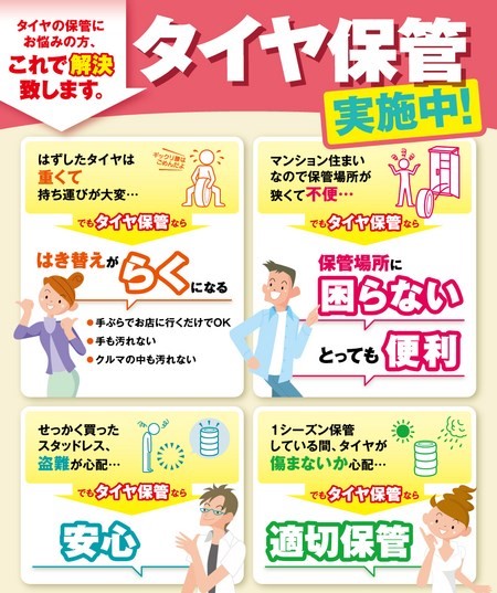 タイヤの保管サービスおススメです(^_-)-☆ ポスト 2020年3月8日 こんにちは!タイヤ館葉山店です! だいぶ暖かくなり夏タイヤへの履き替えも始まってきました(*^-^*) 車への積み降ろしが大変・・・ 保管場所に困る・・・ どうやって保管したらいい・・・? そんなお悩みの方は、タイヤ保管サービスがおすすめです(^_-)-☆ 詳しくはお店までお気軽にお問い合わせください♪ 担当:秋元