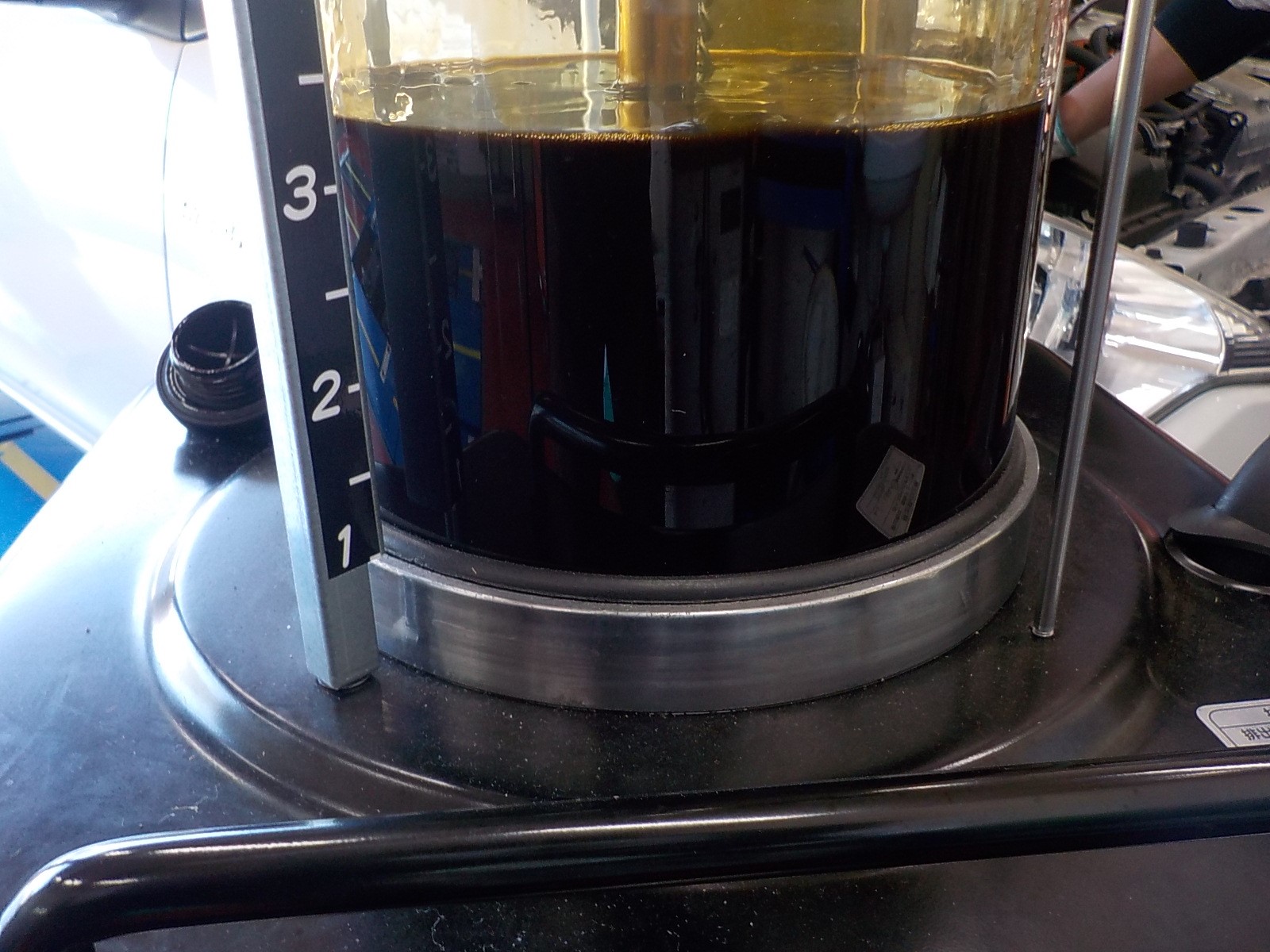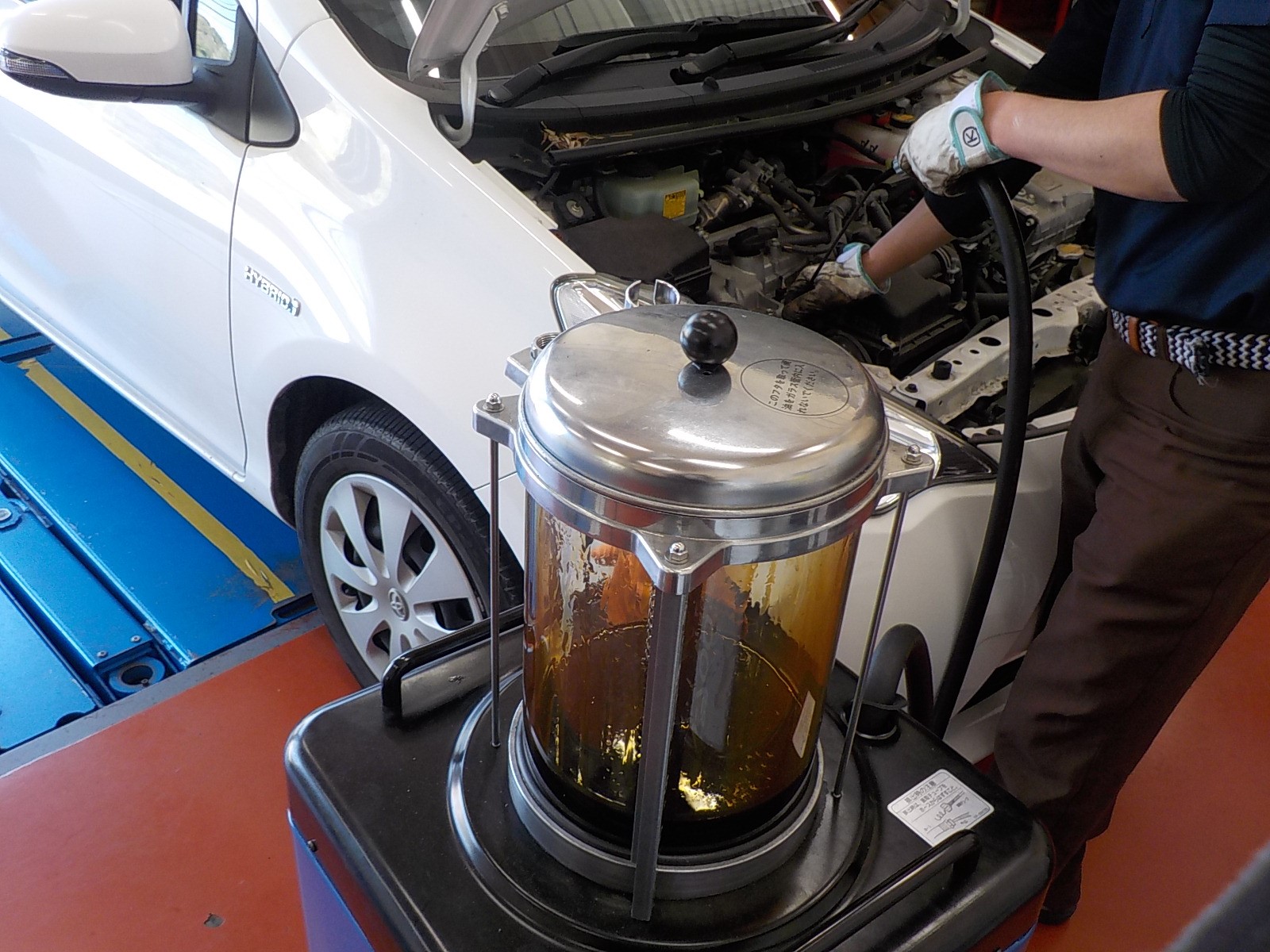 オイルチェンジャーの機械で抜いていきます。