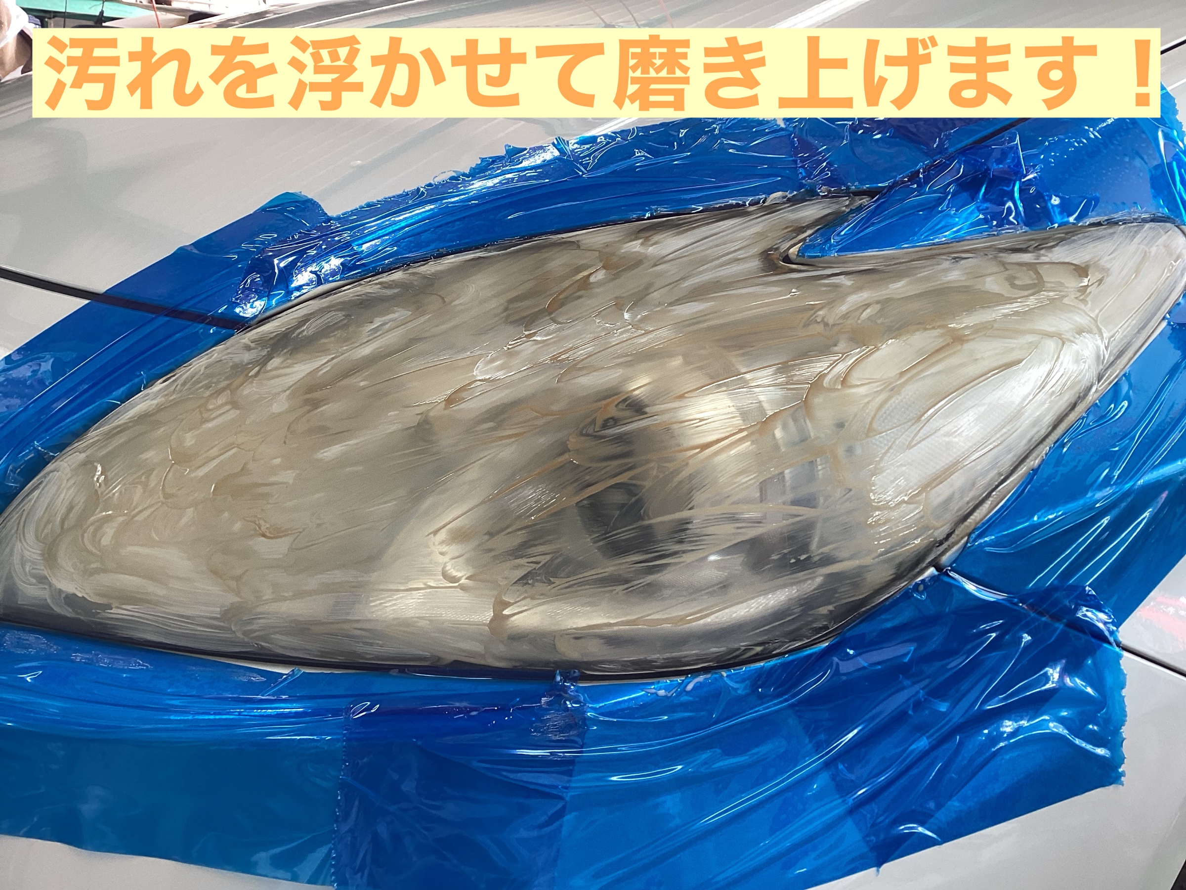 ヘッドライト専用の汚れ落としを使って磨き上げ!!