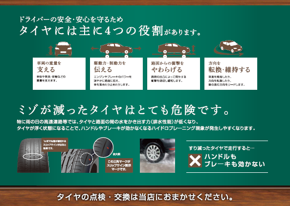 タイヤによって性能が違う事を知って頂き