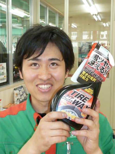 最近、よく売れてます! ポスト 2014年5月26日 いつもスタッフ日記をご覧頂き有難う御座います。最近よくお問い合わせ頂く『ブリヂストンのタイヤWAX』のご紹介です!光沢の持続と共に、空気中のオゾンからガードすることでの、タイヤ長持ちにもつながる優れものです。もちろん、当店のPITへ入庫時に、皆様のお車にも使用させて頂いてます!常時在庫致しております!