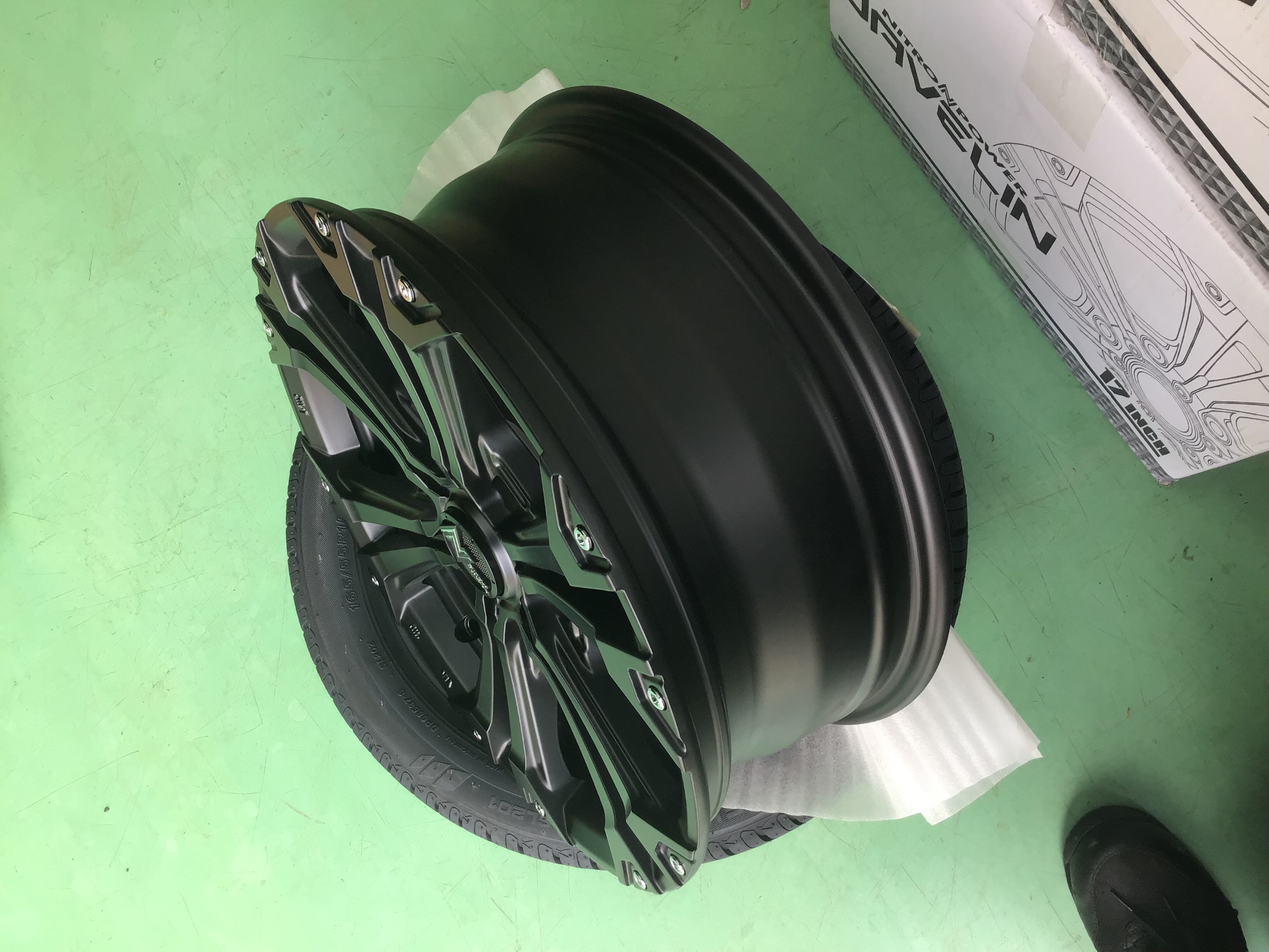 今回はセミグロスブラックで17インチインチへインチアップ致します。