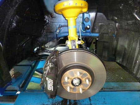 スバルWRXの新車で御座います。この車、ブレーキが非常に大きくて