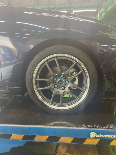 今回は、先にローダウンされているお車なので、フロントのサイズに合しセッティングさせて頂きました