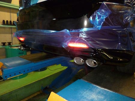 リアバンバーに付いてある赤い反射板、純正は光らない為、今回社外品へと交換☆