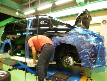 丁寧に作業実施!!純正より少し下がり見た目もカッコ良く仕上がりました♪