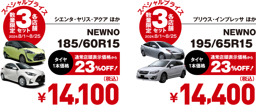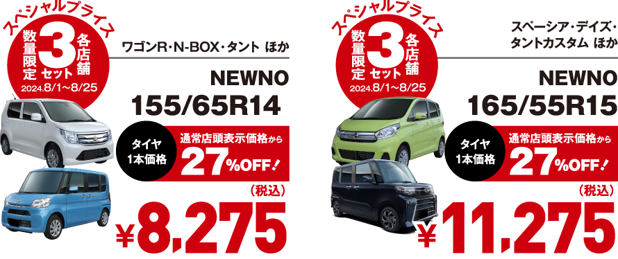 ※上記価格に別途タイヤ交換工賃、廃タイヤ処理料が必要です。