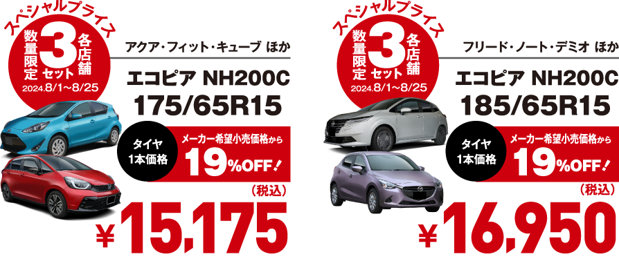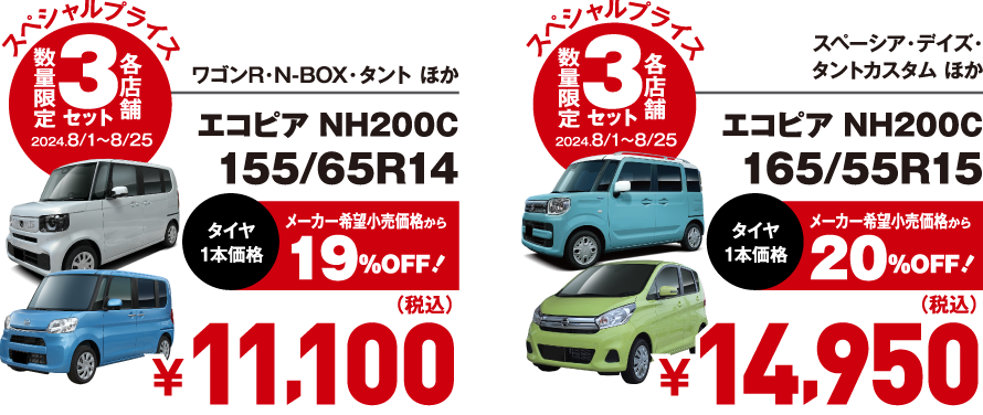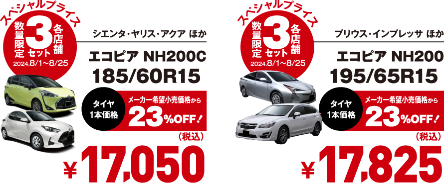 夏得フェア開催♪ 大好評!!【低燃費タイヤ6サイズ・数量限定スペシャルプライス】今お得なタイヤはこちら!