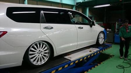 オデッセイ完成!! ポスト 2016年4月8日 無事、お取付完了です!もちろんハンドルを切ってもタイヤとボディーがあたることはありません!車高の調整後、アライメント調整を致しました!ここまでがっつり下げたお車は入社以来はじめて見ました!(といってもまだ入社4ヶ月ですが。。。)なんと!女性のオーナー様です!カッコいいです! 担当:高村