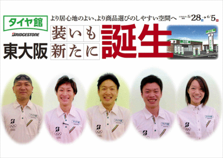 工事期間中はご不便をおかけいたします。。。 ポスト 2016年5月23日 誠に勝手ながら5/23より5/27まで店舗改装工事のため臨時休業しております。お客様にはご不便をおかけ致します。尚、5/28より新タイヤ館東大阪店としてリニューアルオープン致します。イベント盛りだくさんでお客様のご来店スタッフ一同お待ち申しております。 担当:店長