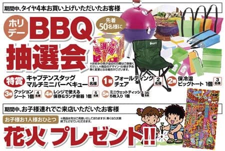タイヤ4本お買い上げで、BBQ抽選会も実施!
