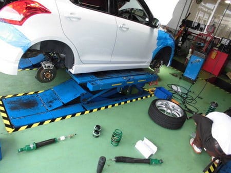 車高調のお取付はお車をお預かりして、お時間は長めに