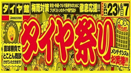 タイヤ館東大阪店では5/23~6/7迄の期間『タイヤ祭り』開催!!