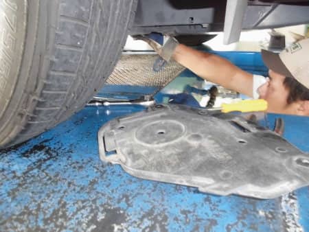 意外と知られないお客様もまだまだおられるので、今日はオイル交換の作業中の