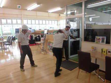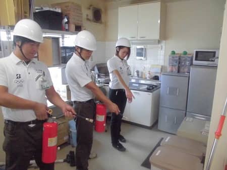 防災ヘルメットがどこにあるかや、消火器の使い方、