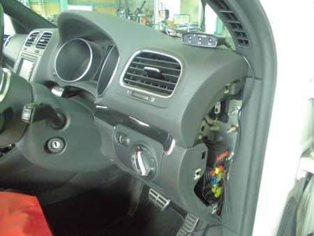 コチラのゴルフは蓋付きのシガーライターソケットのためこだわりの電源裏取りにてお取付!!