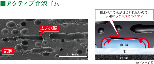 アクティブ発泡ゴムで氷路面にしっかりと密着し、グリップ力が高いので