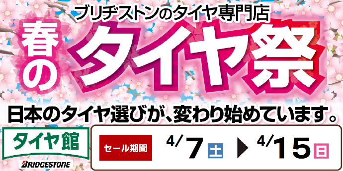 タイヤ館東大阪店では、4/7(土)から4/15(日)まで