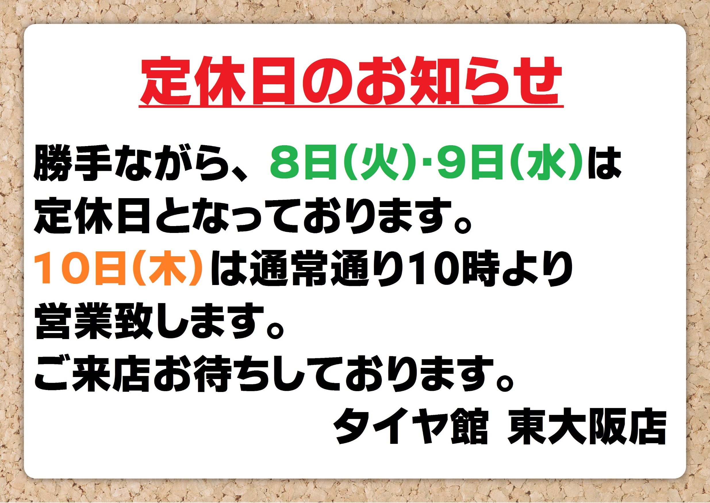 東大阪市・八尾市・大東市・四條畷市・大阪市内・奈良県からもアクセス良いですよ♪タイヤの交換はタイヤ館東大阪にお任せ!