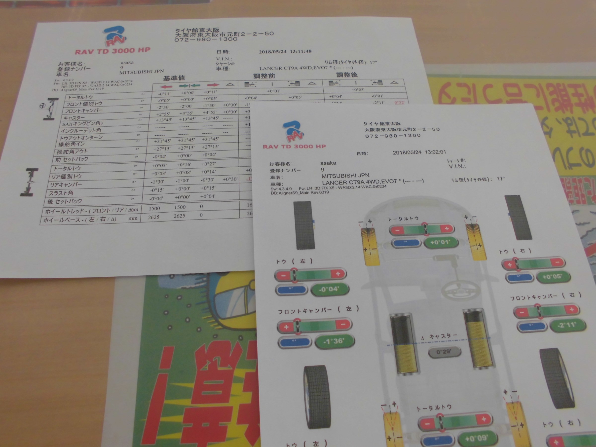 そこで我らが店長、八田の決断により新しいアライメントテスターを導入する運びとなりました!昨日テスターの搬入、設定、操作方法の説明等が1日がかりで行われ本日早速実戦デビュー!!正直まだどのスタッフも新たな作業方法に慣れていませんがもう少し経験を積めば従来よりかなり早く作業ができそうです!なにより良いのはお客様にも非常に分かりやすいデータをお渡しすることができるようになったこと!調整前、調整後のタイヤの角度の変わり様が図解で分かりやすい!従来よりお客様の安心・安全なカーライフに貢献できそうです♪♪♪