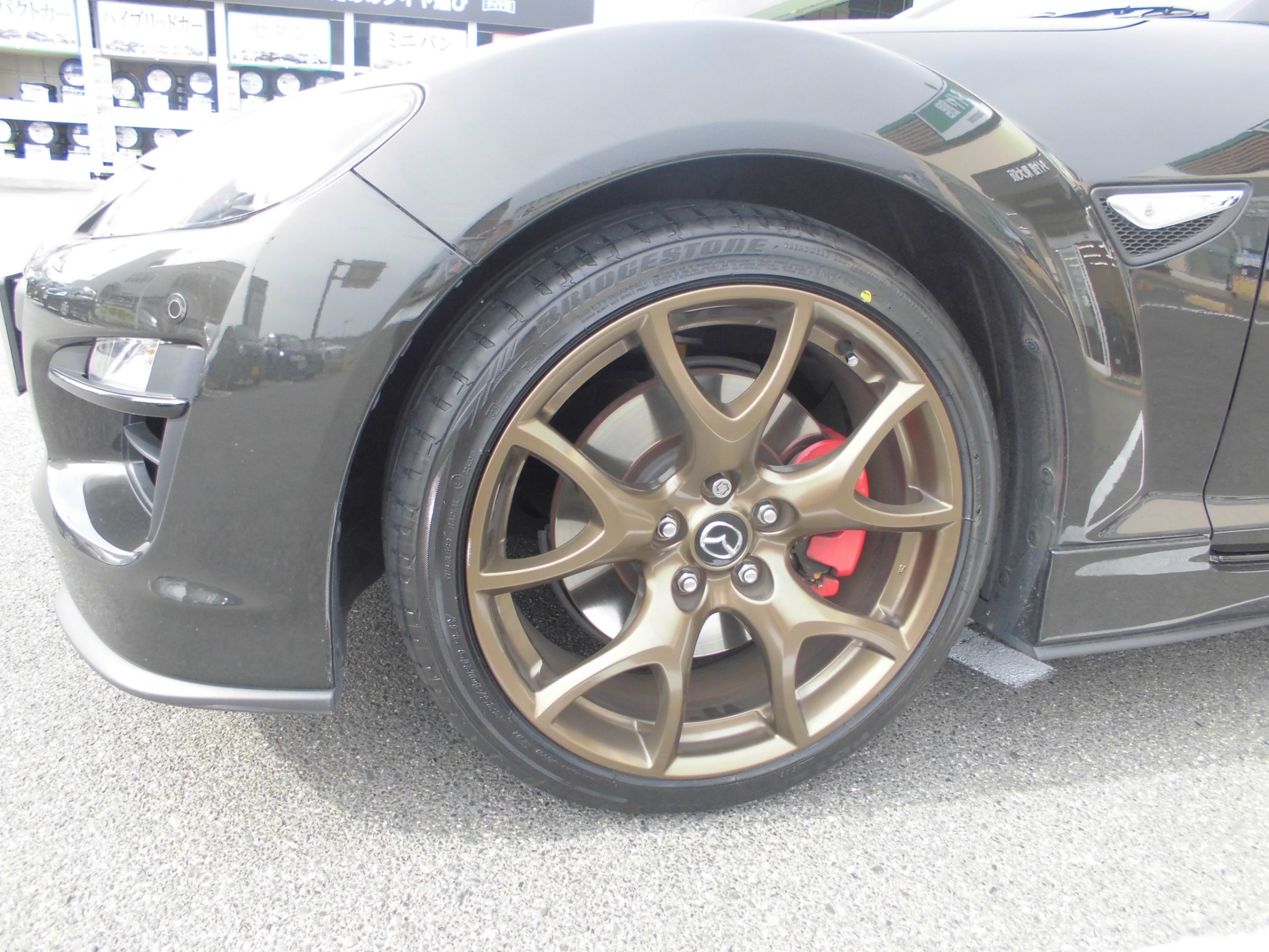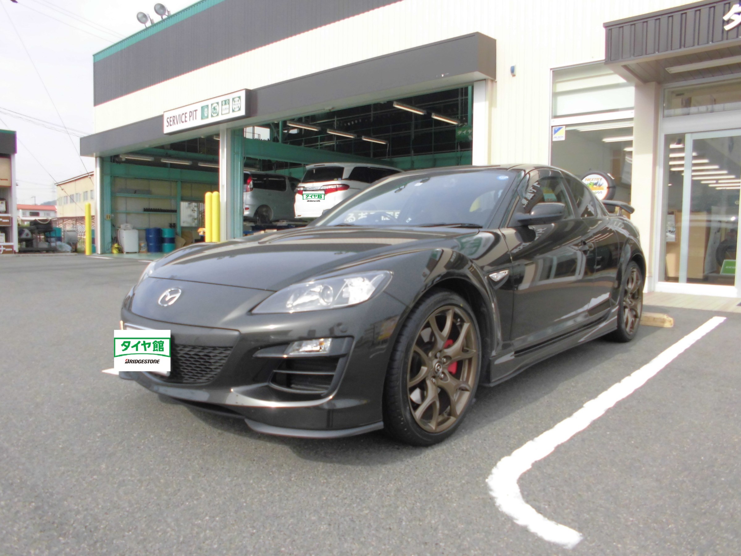 さて、今回は昨日作業を承りましたマツダ RX-8のタイヤ交換とアライメント調整の模様をお伝えします!\(б∀б*)/ワーイ今回お選び頂いたタイヤはPOTENZA S001!スポーツカーに相応しいドライ、ウエット性能に加え、静粛性・乗り心地に長けたREGNOにも採用されている「サイレントACブロック」を採用する事でタイヤが路面に接することで発生する音にも配慮されたまさしくプレミアムなタイヤです!POTENZAはいわゆる「スポーツタイヤ」にラインアップされるのですがセダンなどにもオススメですね!