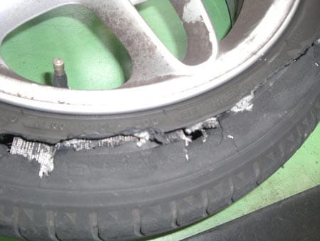 バーストタイヤでご来店!!