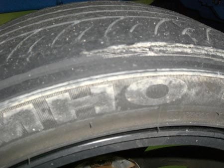 ご来店時タイヤを見ると・・・タイヤの内側が大変なことに・・・
