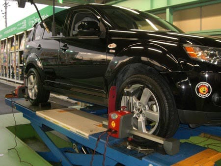 タイヤの片べりも少し有り、アライメントのズレ(トーインになってました。)