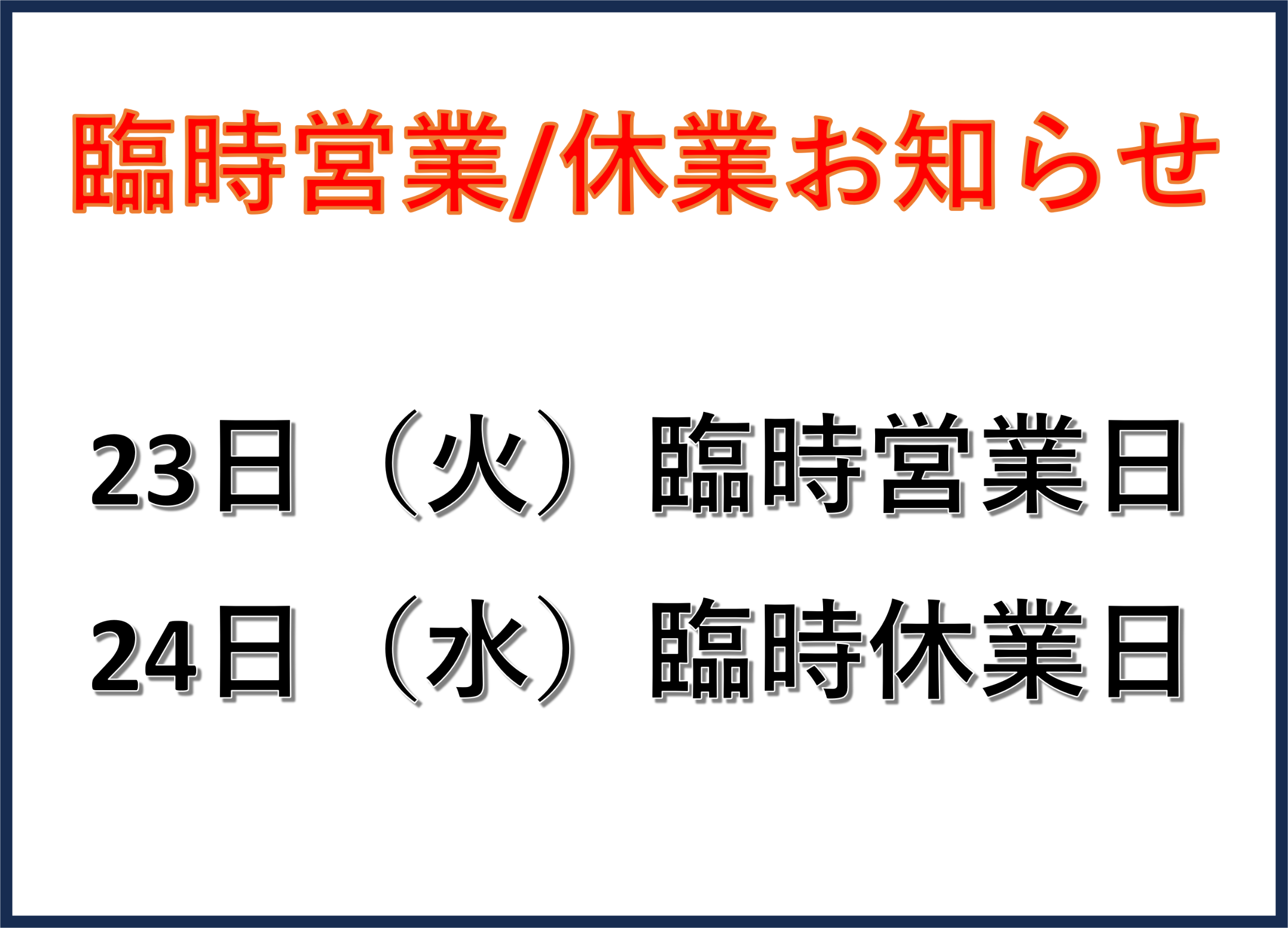9月23日(火)は臨時営業、24日(水)は臨時休業となります。作業/相談のご依頼はWEB予約またはメール相談をご利用ください。