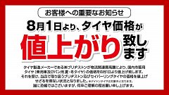 いつもタイヤ館東大阪店のHPをご覧頂きましてありがとうございます。 本日、ご案内させて頂きますのはブリヂストンタイヤが値上がりします!! 8月1日よりタイヤ価格が値上がり致します。 値上がり・・・値上がり前の今! タイヤの交換は今がチャンスです!