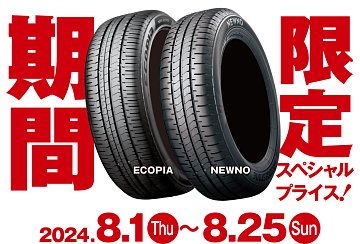 各サイズ限定3セット! 『今だけ』のスペシャルプライスでご提供! 期間限定:8/1~8/25まで 『タイヤのお値段』、『タイヤの性能』 両方を重視されるお客様にオススメ! ブリヂストン『NEWNO』『ECOPIA』が 期間限定でスペシャルプライスにΣ(・ω・ノ)ノ! ブリヂストンの従来品と比較して 雨の日の安全...