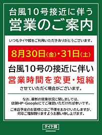 台風10号接近に伴う営業のご案内