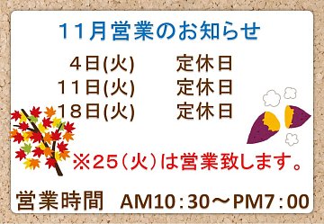 10月28日(火)は定休日ですがWEBから作業予約できます♪
