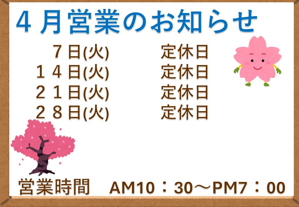 4月営業のお知らせ