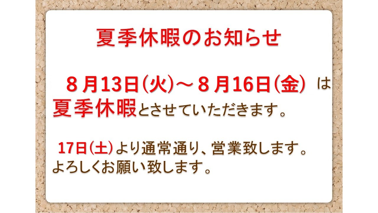 誠に勝手ながらタイヤ館彦根は夏季休暇といたしまして、8月13日から8月16日まで定休日とさせて頂きます。ご迷惑をおかけしますが宜しくお願い致します。