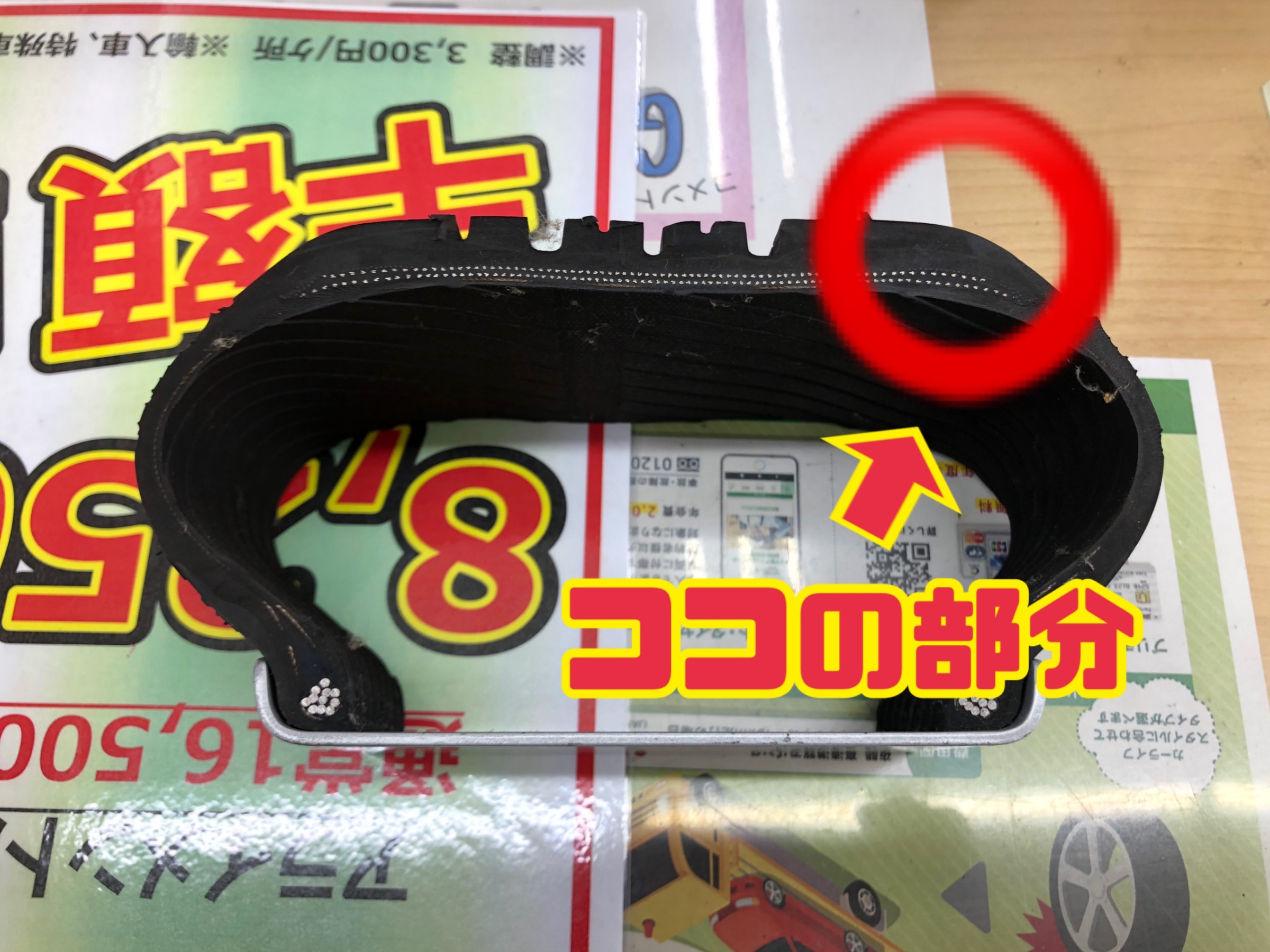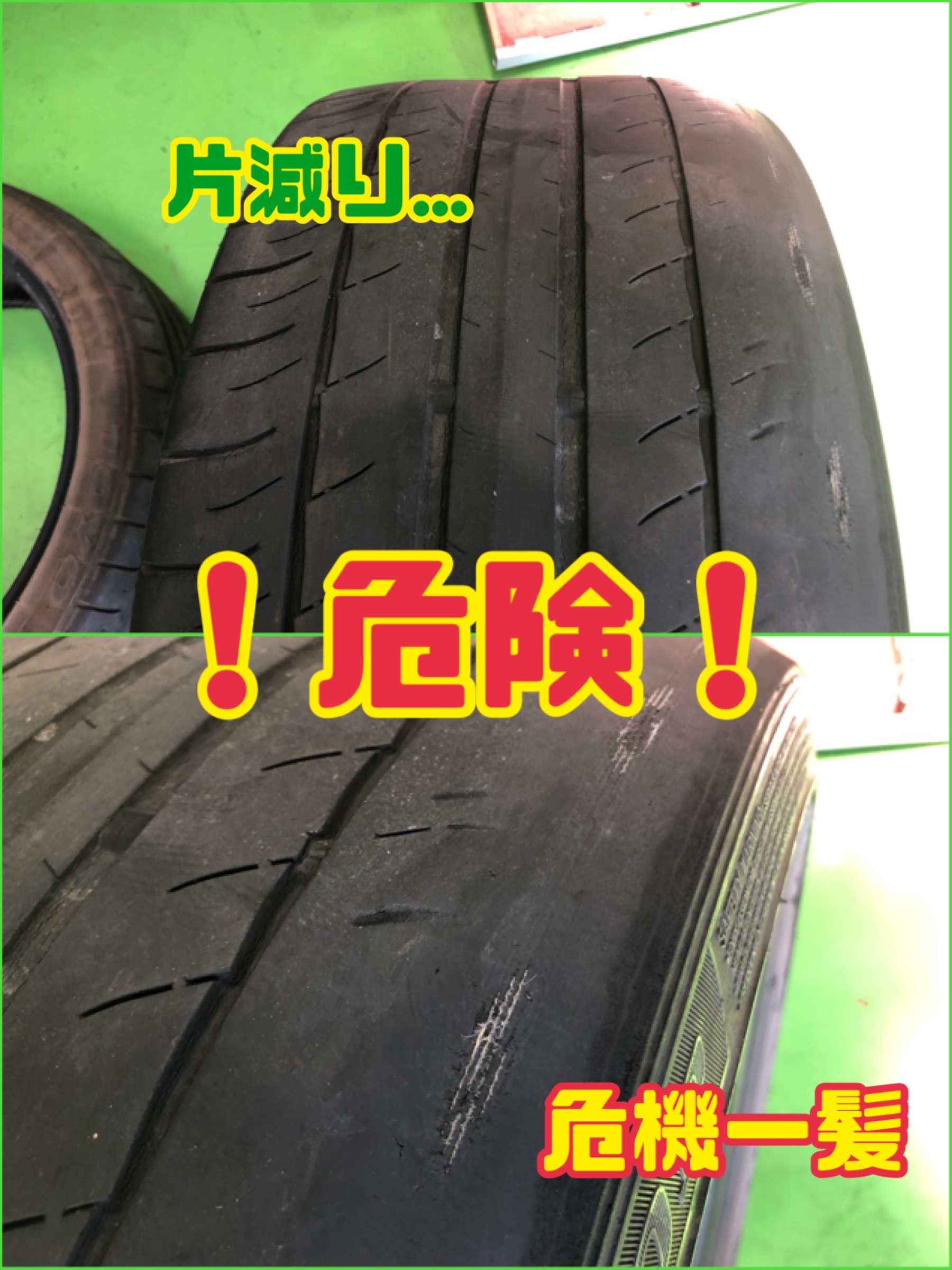 タイヤが偏摩耗し、ワイヤー見えてしまっています(^^;
