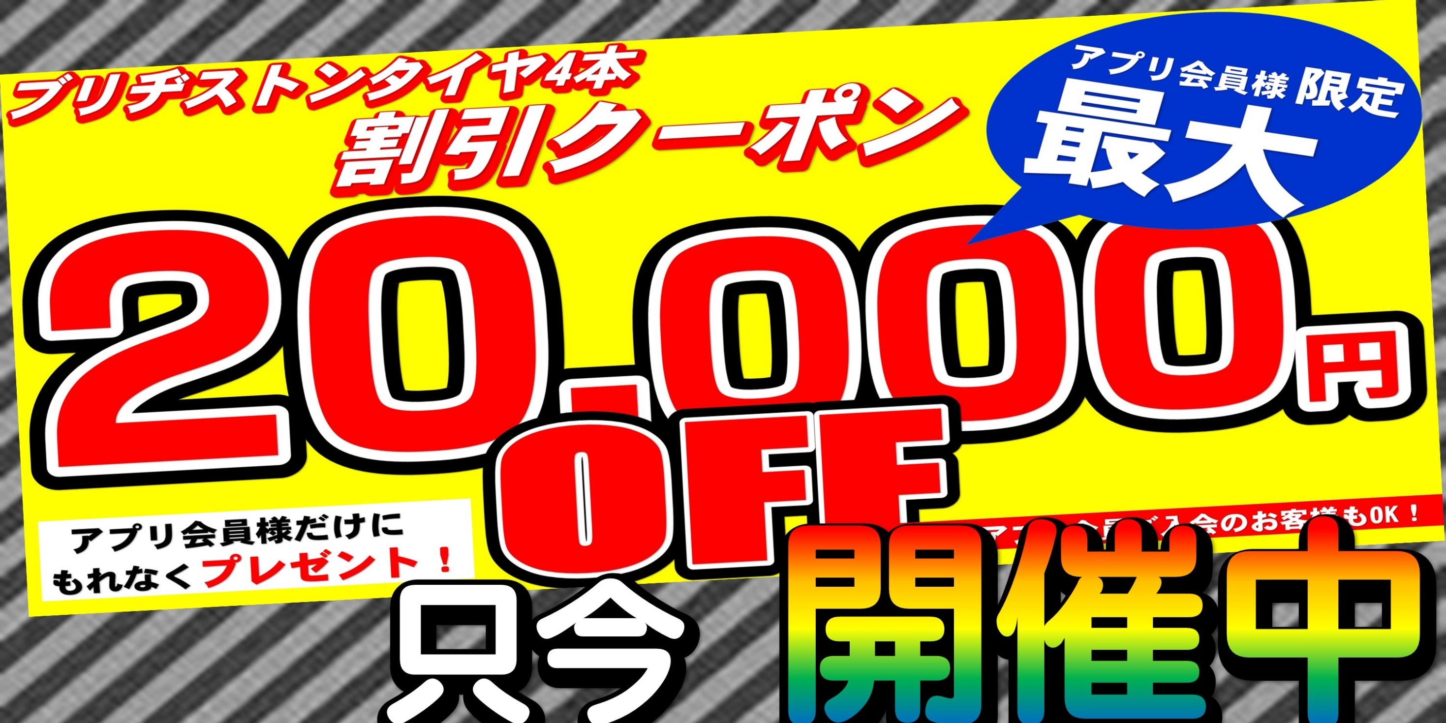 タイヤ館アプリ加入でタイヤ最大20,000円割引!!!※タイヤサイズにより異なります