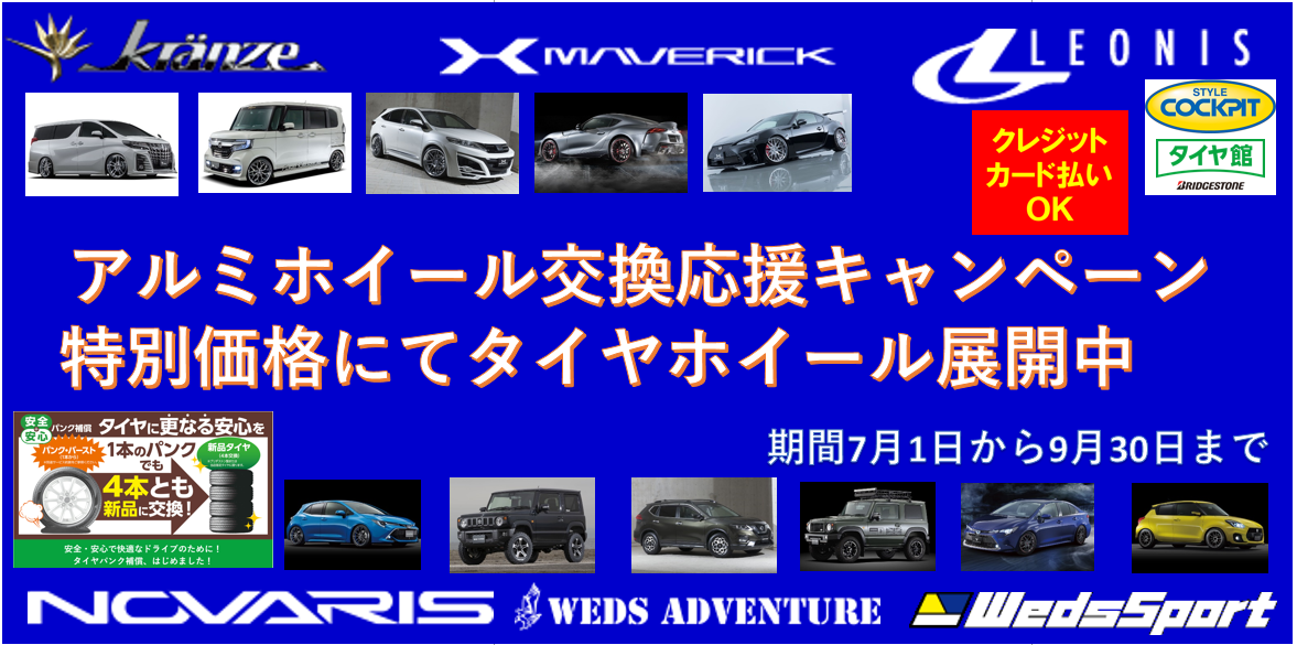 アルミホイールの取り扱いも、タイヤ館姫路店にお任せ下さい。