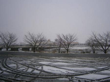 お店の前の道路は車が走って雪がなかったのですが、駐車場が雪まみれ。