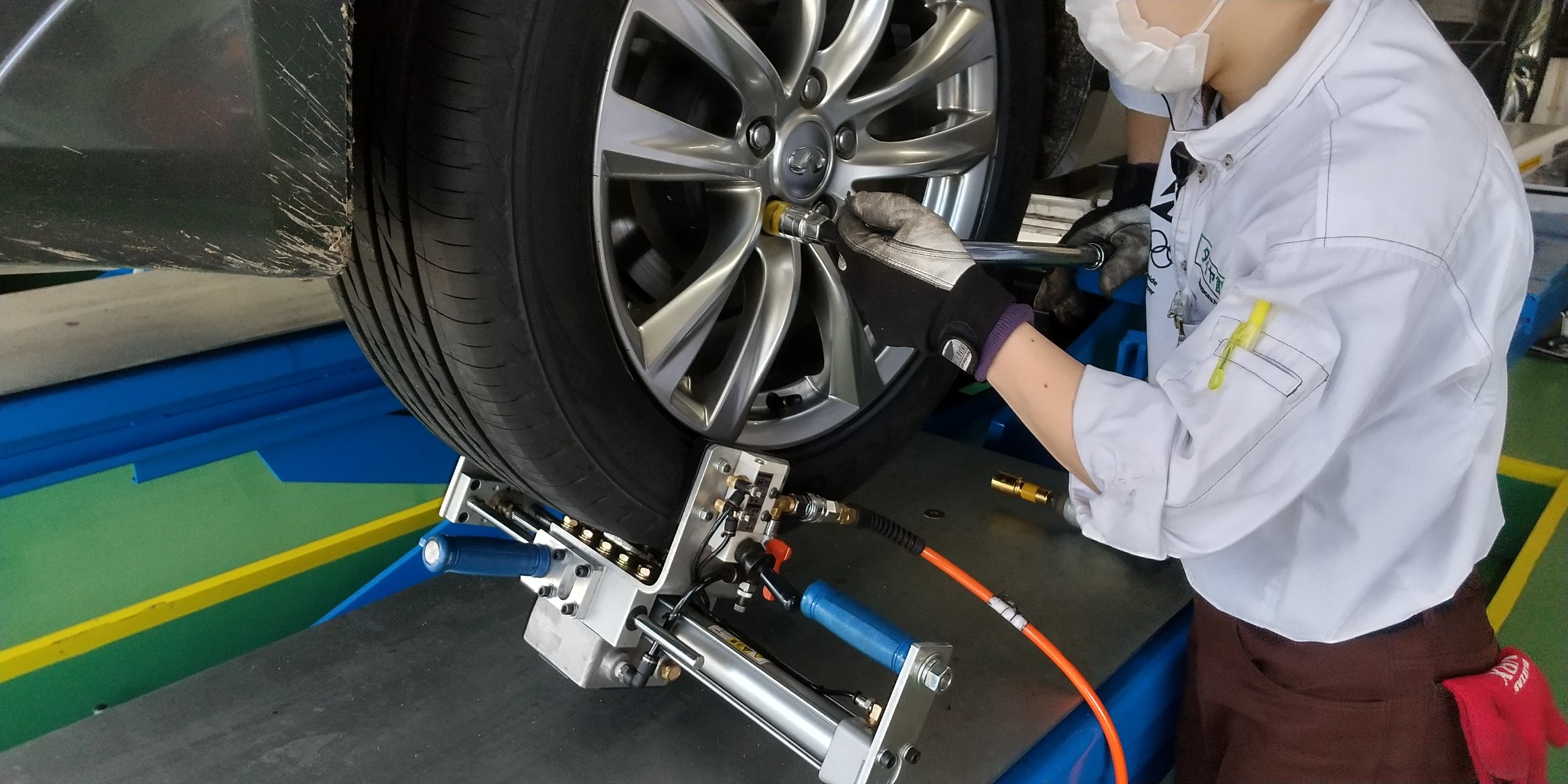 タイヤホイールをお車の中心に合わせる為のコダワリ作業です!!