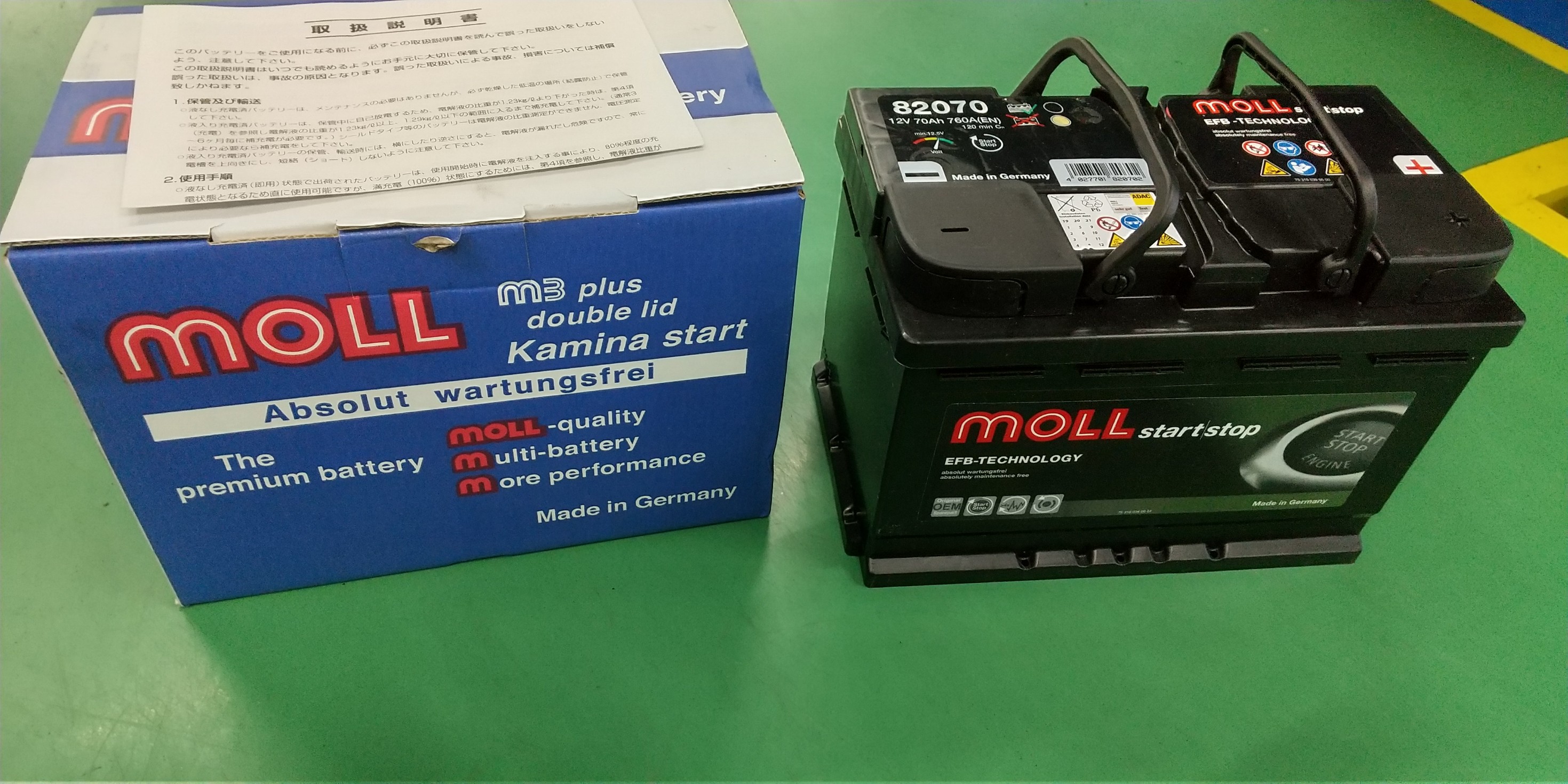 アイドリングストップ車用バッテリーです。